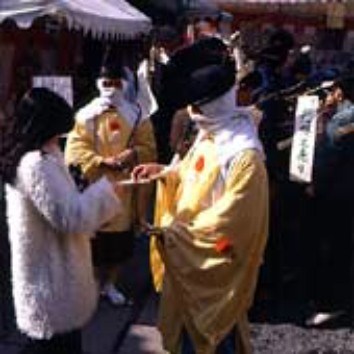 | 《 厄除け、開運を願う無言劇 》 壬生寺 2日・3日13時から20時までの毎時0分より計8回、重要無形民族文化財である壬生狂言 「節分」を上演する(観覧無料)。又、2日14時より、山伏による大護摩祈祷会を行なう。 4日10時から、先着1,000名に、招福ぜんざいの無料接待あり。(予定) ●期 間:2月2日(火)〜4日(木) ●問合せ:壬生寺 TEL 075-841-3381 |