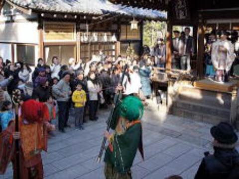| 《 藤森神社節分祭 》 藤森神社 甘酒の無料接待が終日あり、鬼の登場、年男による豆まき、雅楽と舞楽の奉納があります。 追儺式は20時より行われます。 ●期 間:2月3日(水) ●問合せ:藤森神社 TEL 075-641-1045 |