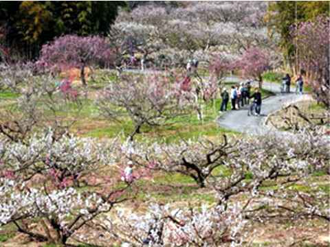 | 《 青 谷 梅 林 》 梅の産地として有名な城陽市の南部丘陵地に広がる京都府最大の梅林で、鎌倉末期には 後醍醐天皇の皇子、宗良親王の歌に「風かよふ綴喜の里の梅が香を空にへだつる中垣ぞなき」 と詠まれていた。早春には約1万本の白梅の花が咲き、青谷が甘酸っぱい香りに包まれる。 昭和59年(1984)より毎年、開花時期には梅まつりが開催されている。売店は10〜15時 ●見ごろ 2月下旬〜3月下旬 青谷梅林 梅まつり 2月27日(土)〜3月21日(月・祝) ●梅 林 入場無料 期間中駐車場有 普通車 400円 【青谷梅林】京都府城陽市中 JR奈良線[山城青谷駅]→徒歩20分 ●問合せ:城陽市商工観光課 TEL 0774-56-4019 |