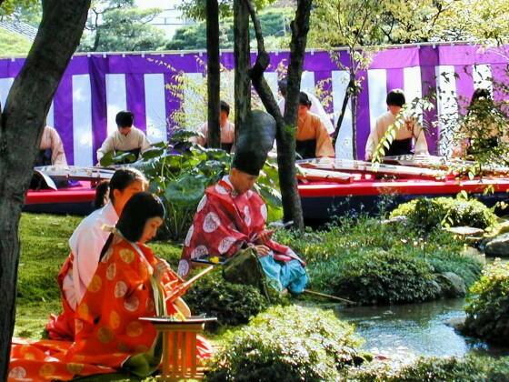 | 11月3日(火・祝) 曲水の宴 城南宮 TEL 075-623-0846 洛南の地の神社、ツワブキの咲く平安の庭・楽水苑で行われます。小川の流れに羽觴(うしょう 盃を運ぶ鳥形の船)を流し、それが目の前に流れ着くまでに歌を詠み終える平安貴族の典雅な 遊びを再現する催しは、恒例の秋の人気行事。(雨天中止) ○七五三詣り(11/1〜30) |
