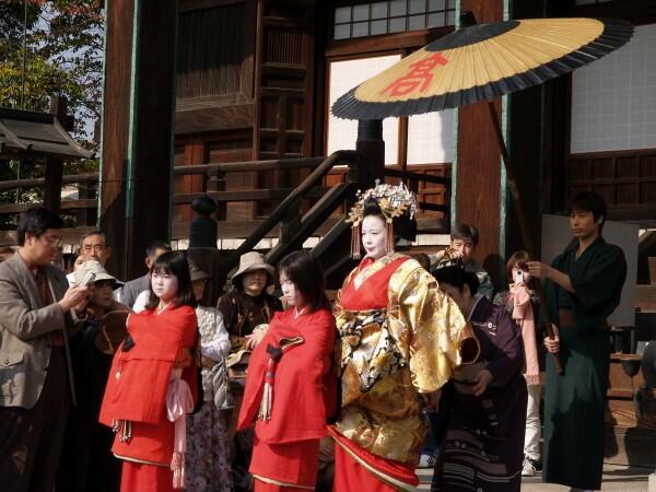 | 11月8日(日) 夕 霧 祭 清凉寺 TEL 075-861-0343 ○江戸の高尾、京の吉野と並び称された大阪の名妓「夕霧」の墓がある清凉寺で追善法要が 行われます。島原太夫による舞や太夫道中などが行われ、折しも「嵐山もみじ祭」に合流。 祭が一層賑わい、華やかになります。 |