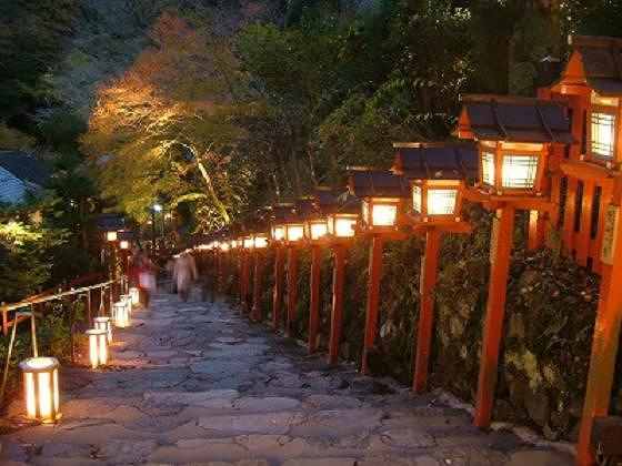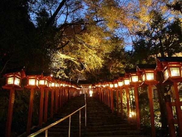 | 11月7日(土)〜29日(日) 貴船もみじ灯篭 貴船観光会 TEL 075-741-4444 京の奥座敷「貴船」の街道沿いに灯篭が設置され、優しい灯りに包まれます。貴船神社周辺 では、もみじをライトアップ。週末にはライブも行われます。また、叡山電鉄「貴船口駅」および 「二ノ瀬駅」と「市原駅」〜「二ノ瀬駅」間のもみじのトンネルをライトアップ。 期間中は電車・バスも増発されます。 |