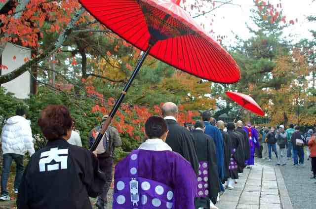 | 11月5日(木)〜15日(日) 十日十夜別時念仏会 真如堂 TEL 075-771-0915 十日十夜の間念仏を唱え、極楽往生を願う行事です。 拝観料 500円(境内無料) ○11/5〜14 十夜念仏。 ○11/15 結願、お練り、阿弥陀仏ご開帳、小豆粥の接待(有料) |