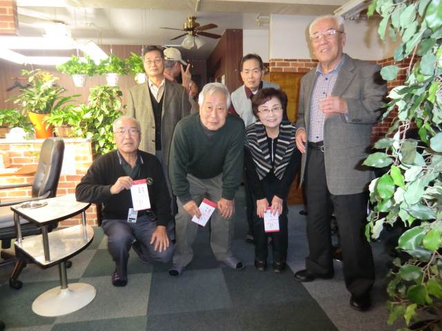 | ☆ 平成23年度京都支部麻雀同好会11月懇親大会成績 ☆ 平成23年11月17日今年最終の懇親麻雀大会を実施しました 今回の大会は30名の参加に於いて行いましたが、2人余りの5人打ち卓が 2卓となりましたが、皆さんの熱意は高く最後の成績発表に於いては各人の 順位が気になり、入賞者は嬉しさから拍手万歳で無事終了しました。 (記 杉村 光照氏) |
