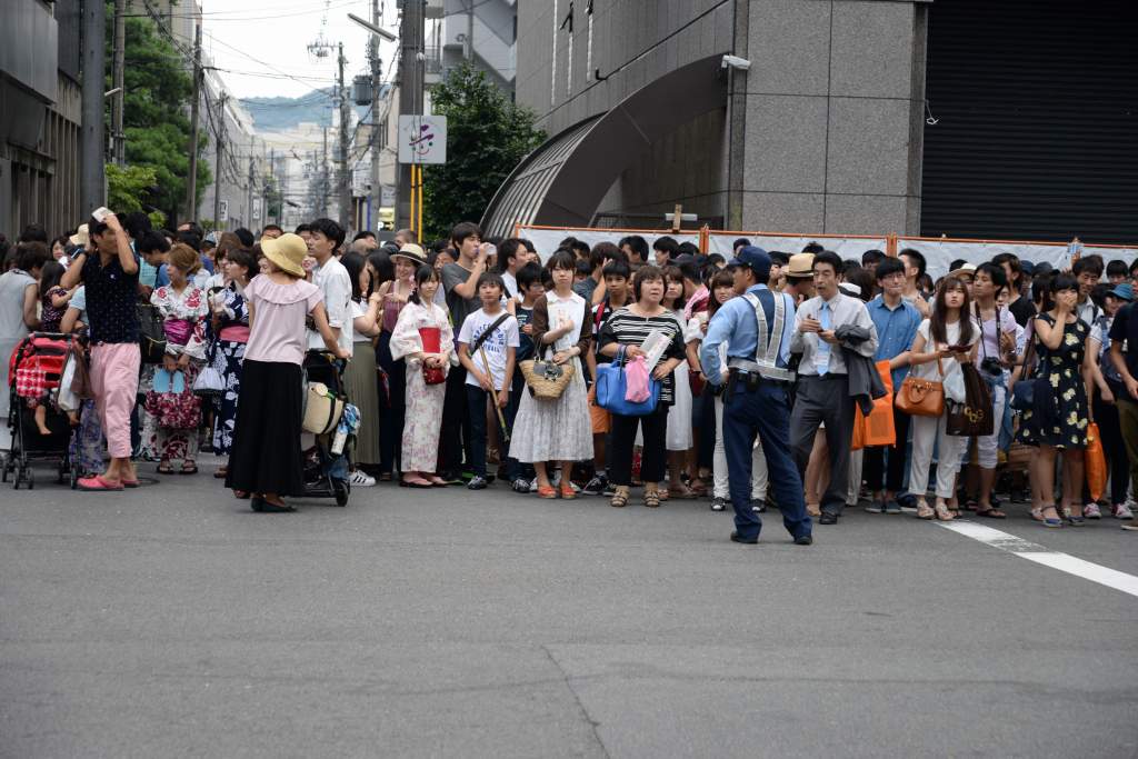 山鉾の巡行はどうするか迷いましたが、テレビで巡行を見ているうちに後悔するといけないと思って、 11時ごろにバスで出かけました。経路が変更になっていて、四条堀川まで行き、そこから新町通りまで歩いて行きます。 新町通りは細い道ですが、ここを鉾が帰ってゆきます。 広い通りの四条通りや、御池通りで悠然と鉾を鑑賞するのも良いですが、また辻回しを鑑賞するのも良いですが、 狭い通りを目の前を鉾がとおるのを鑑賞するのも迫力があります。何しろ目の前を大きな車輪がとおりますので。 京都の人は皆知っていて、新町通りはすでに人が一杯です。今か今かと鉾が通るのを待っています。警備の人が大きな声で 注意していました。 ここで重要なことに気づきました。カメラの容量がないことに気づきました。仕方なく、鉾を待っている間に過去の 入らない写真を整理するはめに。でも何枚かは撮影することができました。 やがて、パトカーに先導されて長刀鉾がやって来ました。目の前を横切ってゆきます。 すごい迫力です。 ガラガラときしみながら通り過ぎます。また木片のブレーキも準備されています。 急ブレーキをかけるときは木片で10トン以上もある鉾を止めます。また、微調整用の木片を持った人もいます。 これは辻回しをする程でもない時に木片に乗り上げて、大回りして、微妙に進路を変更するものです。 これらも伝統の道具なのでしょうね。 長刀鉾の次は山伏山が次に続きます。新町通りを北上します。次々とおなじみの鉾が通ります。屋根の上にも人がいます。 これは電信柱とぶつかりそうな時に足で屋根を動かし、衝突を避けます。 これらの下支えの方のお陰で伝統が支えられているのでしょうね。 御池まで行くと、今まさに辻回しをしているところです。 四条河原町、河原町御池、そして、この新町御池でも辻回しが見られます。 ローカルな方が面白いです。 新町四条でもあるのでしょうね。 何とか無事巡行も終わりました。 京都の町中を見て帰ります。 しばらく見てない間に、だいぶ街の風景は変りました。 |