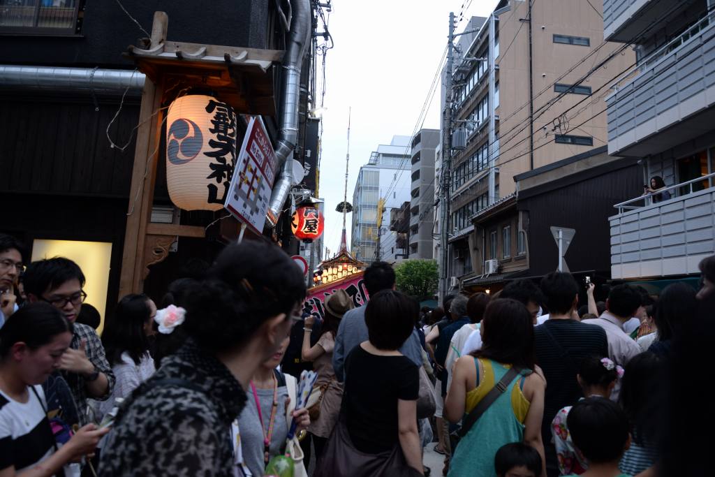 13日もこの界隈に夕方に来る用事があり、このあたり一帯を回って来ました。 新町通りでいきなり鉾の試引きに遭遇しました。 まだ宵山には間がありましたが、あたり一面は祇園祭りの雰囲気が漂っています。どこからか鉦と笛の音が聞こえて祇園囃子が聞こえてきます。 もうすぐですね。