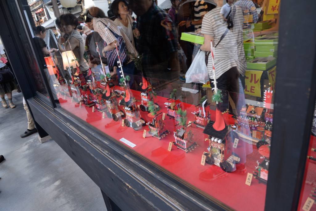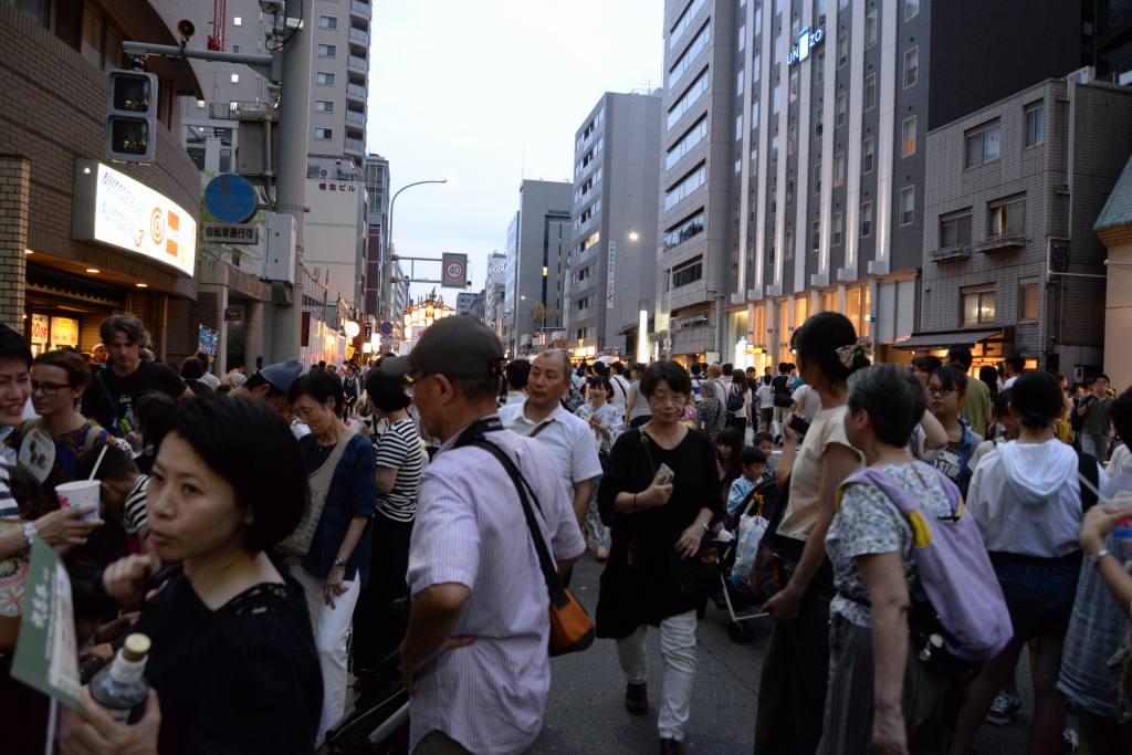 〜 23日(後祭宵山) 〜 7月23日は後祭の宵山です。数年まえから、前祭と後祭が開催されるようになりました。 後祭の宵山についても所要があり、出かけました。後祭では露店がなく前祭のような晴れやかさはありませんが、 また、違った雰囲気です。しっくりした雰囲気で、むしろ祇園祭をたのしむのは後祭の方がよいかもしれません。 バスの中から、今回龍頭を新調した大船鉾がみえたので、すぐに見に行きました。四条新町通りを下がったところです。 かなりの人だかりです。周囲の見学者は一方通行になっています。廻りにはおみくじや粽も売っています。 御神体も安置されています。希望者は鉾の中に入り、見学もできます。ひとまず、大船鉾を離れ、四条通りを越えて、 新町通りを上ります。間もなく南観音山が見えます。さらに上がると北観音山があります。 どちらも山と言えども限りなく鉾に近い巨体です。大きな車輪もあります。さらに上がると八幡山があります。 用件を済ませて、帰りも新町通りを下がろうと思いましたが、通りを間違えて、室町通りを下がりました。 でも通りを間違えたお陰で、さらにいろいろな鉾や山をみることができました。まず、役行者山、黒主山と続きます。 横丁から祇園囃子の音が聞こえてきました。何時の間にか横丁へと足が向かいました。道端で祇園囃子の練習中です。 また、各町家ではこの時期には秘蔵の展示があります。由緒ありそうな人形が展示されていました。 また淨妙山の近くでも展示がありました。さらに鯉山では路地の中へ入ると大きな鯉の展示があり、由緒を説いています。 橋弁慶山では2階に弁慶と牛若丸を模した展示がありました。 そして元の大船鉾へ来ると辺りはすっかり暗くなっていました。 |