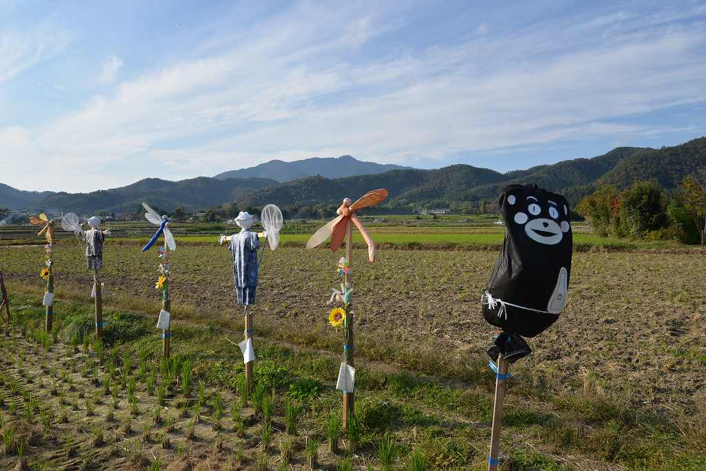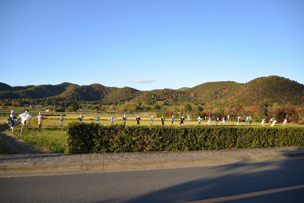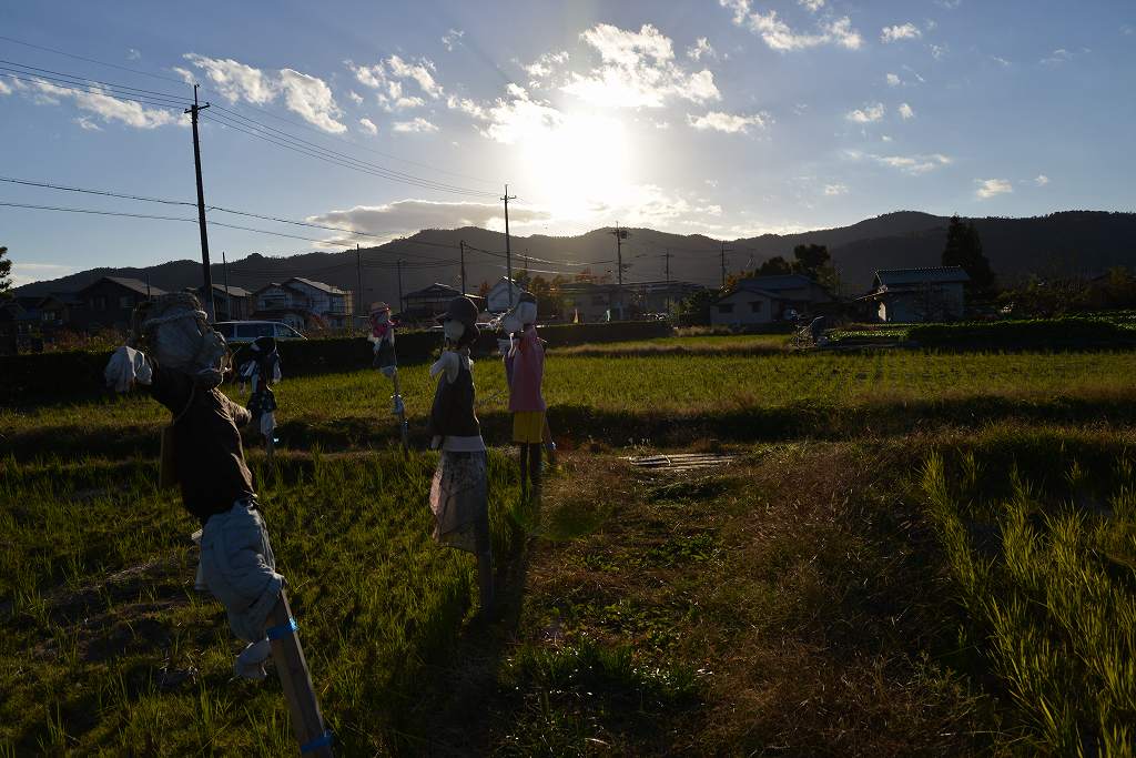 〜2014年〜 今から思えばこの年の案山子が一番充実していました。 昨年2013年と同じ場所に大量の案山子があり、その奥にも まだいくつかの案山子がありました。さらにその奥にも案山子が見えて、 思わず、足を伸ばしたものでした。 また、稲が刈り取られて、年が変わっても、台風が来ても たくさんの案山子が立ててありました。しかも2重3重に 立ててありました。奥の方にも案山子がありました。もっとも充実した秋でした。 |