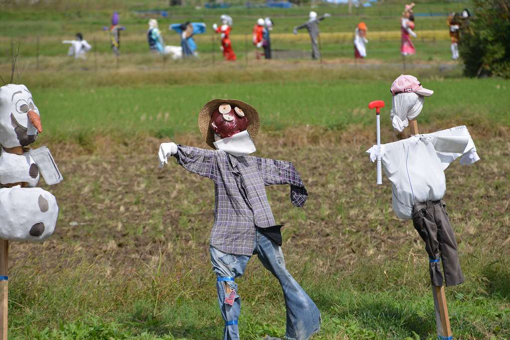 収穫の秋です。田んぼには穂が垂れています。 鳥が折角実った果実、穀類を狙っています。以前、これらの被害に備えて昔は良く案山子が立っていました。 でも最近はあまり見かけなくなりました。しかし、広沢の池のそばを通ったときにたくさんの案山子があるのを見かけました。 思わず車を引き返して、案山子をいっぱい見てきました。