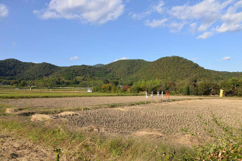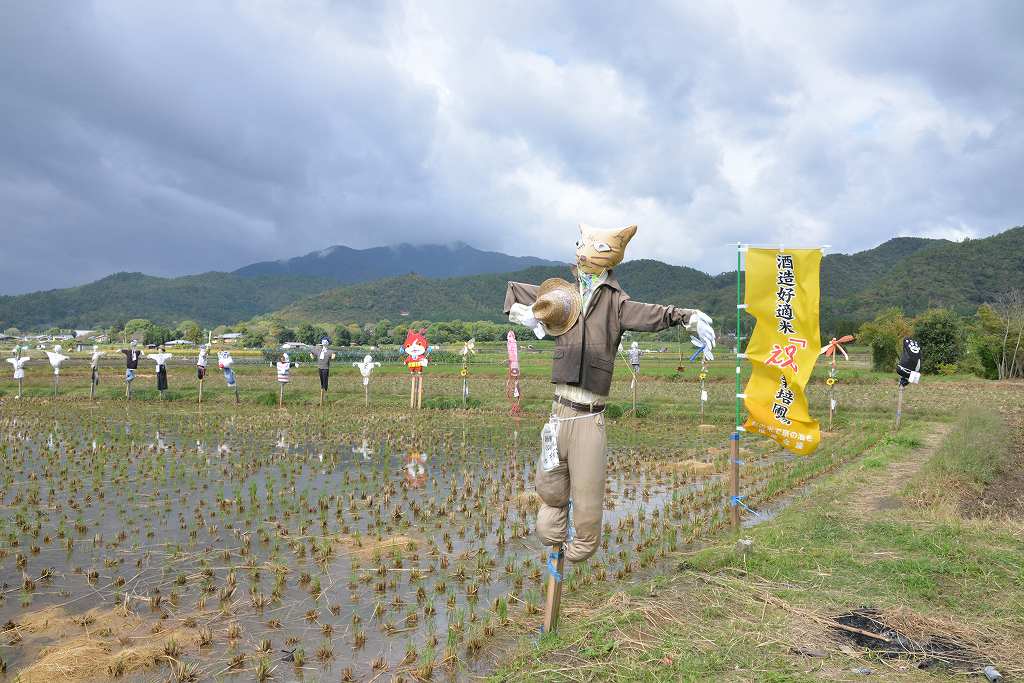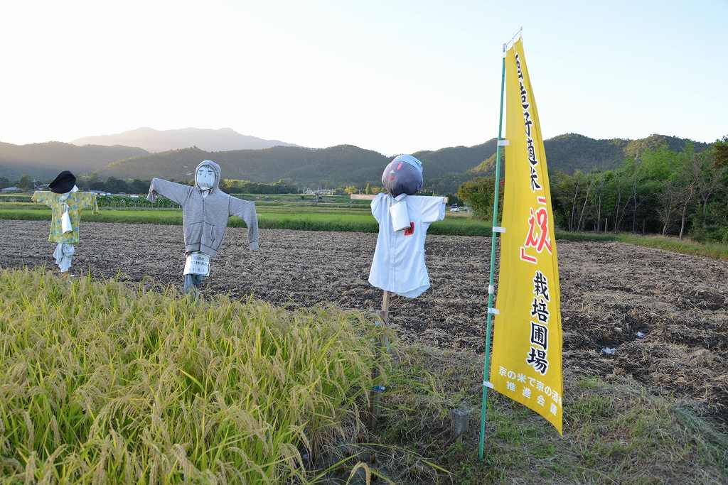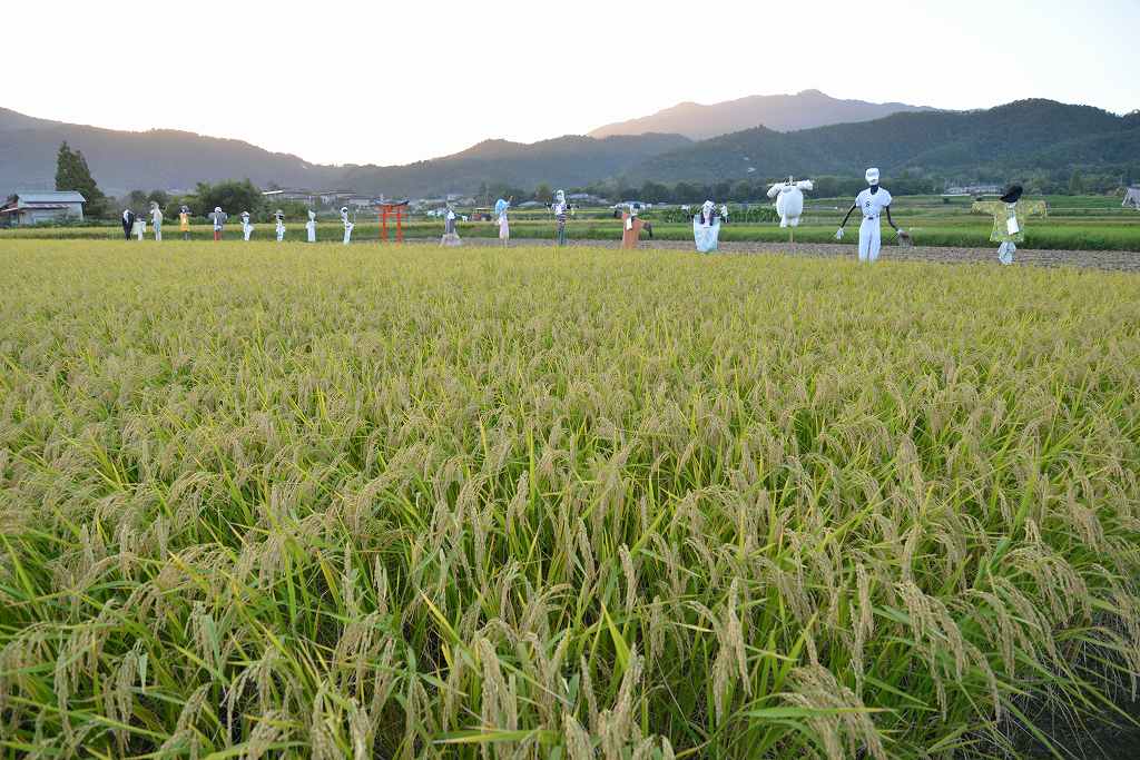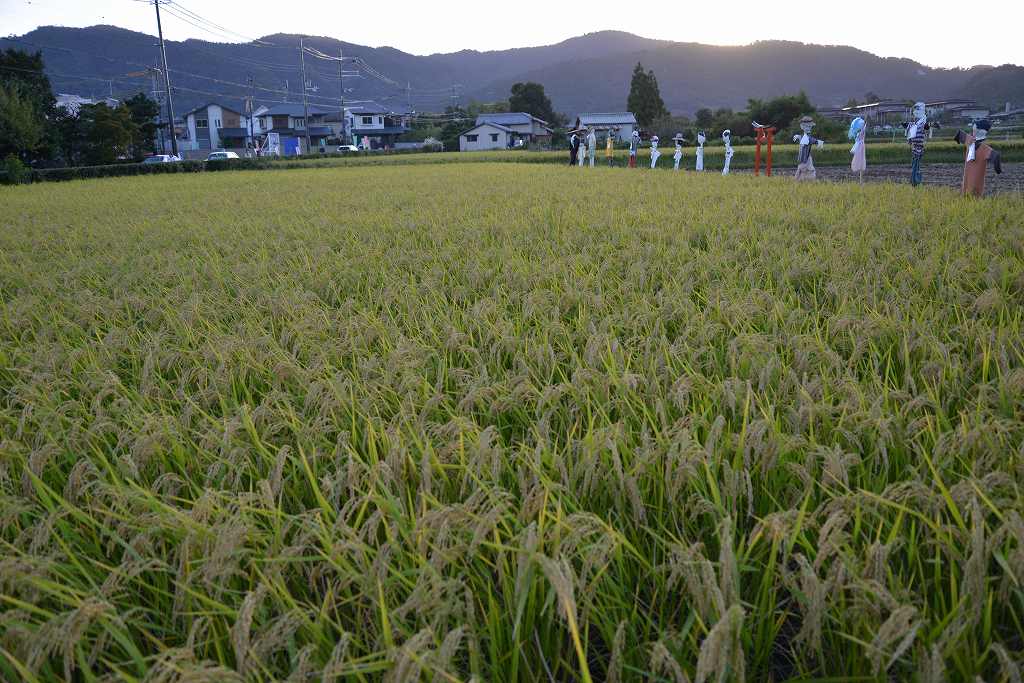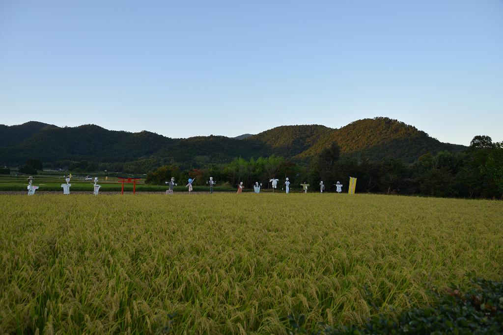 だれがこんなにたくさんの案山子をつくったのでしょうか。 よくわかりませんが、この景色ににしっかりと溶け込んで面白いと思ったものでした。 数年前からこの地域に案山子はたくさんあったようでしたが、気がついたのは2013年の秋でした。 今年はどうでしょうか。もう一度見に行きました。 ありました。今年もたくさんありました。良かった! このあたりは歴史的特別保存地区です。田園が開けています。 遙か向こうには小倉山でしょうか。山々の稜線がきれいで、いかにも特別なものを感じます。 心も和みます。 ここへなぜかたくさんの案山子があります。だれがこんなに大量の案山子を おいたのでしょうか。よくわかりませんが、心もひろくなります。 近づいてみると皆個性的な顔つきをしています。時事的な世相を反映した案山子は見かけません。 美術系の学生が設置したのでしょうか。良くわかりません。 案山子自体が最近では数がすくなくなっていると感じていましたが、 ここでこんなに大量の案山子を発見したのは驚きです。 そばへ寄ると酒米を栽培していると書いてあります。 京都の伏見等へ出荷されて伏見の銘酒の元になるのでしょうか。 それはさておき、この開けた京都らしい背景をバックに案山子が良く似合います。 シャッターを切りまくりました。いくら見ても飽きない風情です。 何時しか時間が過ぎ、日が暮れてきました。夕焼けをバックに面白い風情でした。 寒くなってきました。また日を改めてと思い、後ろ髪を 弾かれる思いで、案山子とも別れを告げました。 しばらく間をおいて、再度案山子を見に行くと、稲は刈り取られ、 案山子も撤去されて簡素なものが数対あるのみでした。残念!! 昨年は年が変わるまであったかとおもったのですが、 なぜか今年は速やかに、案山子は撤去されたようです。 また来年もあるかとおもいますので、来年に期待しましょう。 広沢の池まで足を伸ばすと、何事もなかったような静かなたたずまいです。 |