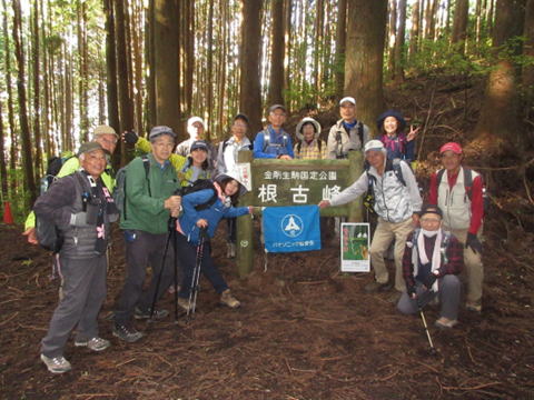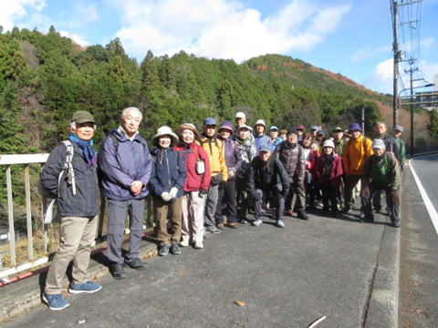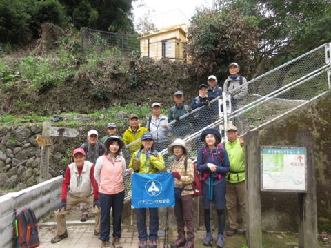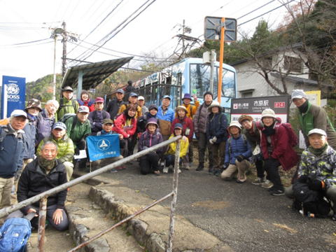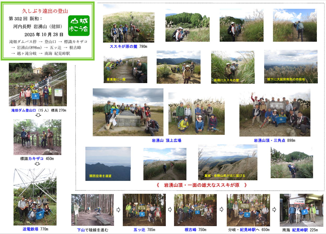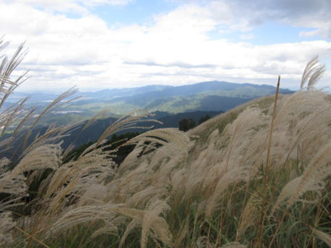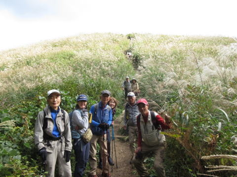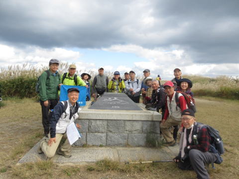 | 10月28日(晴時々曇)、朝晩冷え込む時期となりましたが、河内長野駅に15人が集合。 河内長野駅からバスで約40分の滝畑ダムの登山口から出発し、ダイヤモンドトレール路を辿り、岩湧山(898m)に登頂し、 稜線の分岐から下って紀見峠駅に至る11kmの行程です。 最初から急な登り坂が続き、標高差600m強を上るのに息が 切れましたが、登り切った山頂周辺にはご褒美がありました。 視界を遮る植栽の杉林を抜けると、眼前に突然と現れる一面のススキが原の丘が圧巻でした。 天気も良く、ススキが原や山頂からのパノラマ眺望を満喫することができ、よい一日となりました。 |