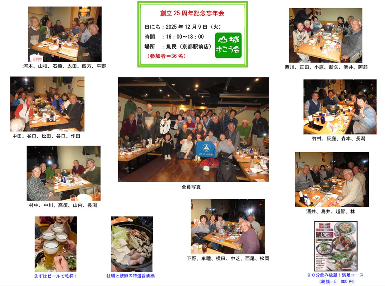 | 7.御園橋を渡って賀茂川右岸へ | 8.全員写真(創立25周年記念忘年会) |