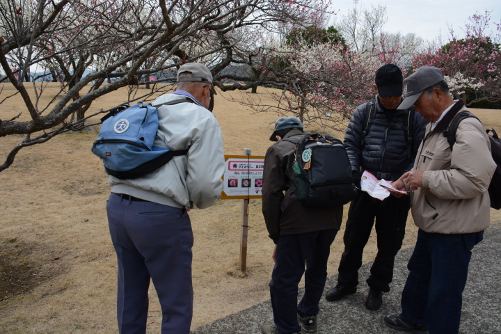 ![]() 十分堪能した梅林をバックに皆さんいい顔してます |