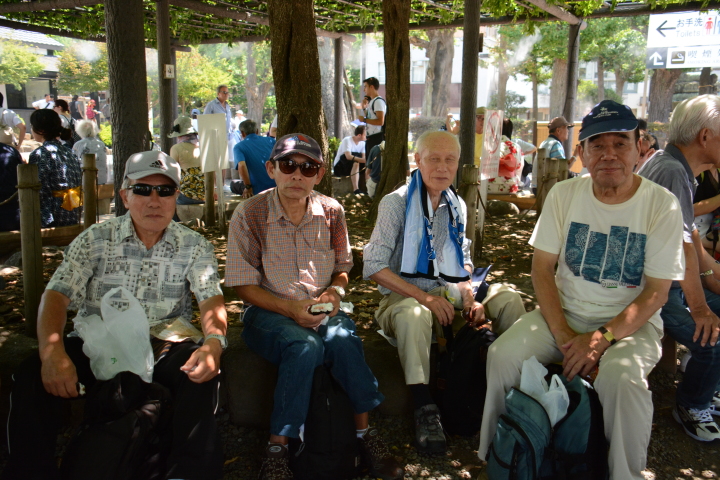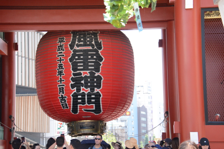 ![]() 故松下幸之助氏寄進の雷門大提灯の前で、自慢げな元松下戦士たち(日傘男子1名含む) |