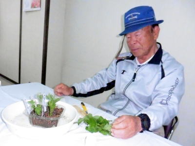 内 容: 「福助菊育成の手引き」に従って、福助予備挿し芽作業を実習した。