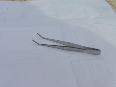 台木から伸びた新芽の先端を摘まみ取る。小さな芽なので、ピンセットや細い先端のハサミ等で