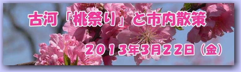 | 春らしい温かい天候に恵まれて、「古河、桃花祭りと市内歴史散策」をしてきました。 今回もボランティアガイドさんの案内で歴史や街並みを楽しむことができました、ガイドさんがいるとウォーキングも一味違ってきます。 歴史博物館、直木賞作家永井路子旧宅、幕末に海外情勢を広く集め開国に大きな影響を与え、多くの貴重な資料を残した鷹見泉石記念館を見て、花桃が最高のタイミングの古河総合公園へと歩き、そしてお昼を楽しみました。 午後は旧日光街道沿いに残る、日光社参の大名行列への古河藩接待所跡など長い歴史の街並みをあるきました。 帰路は道の駅でお土産を買い有意義な一日を過ごしました。 |