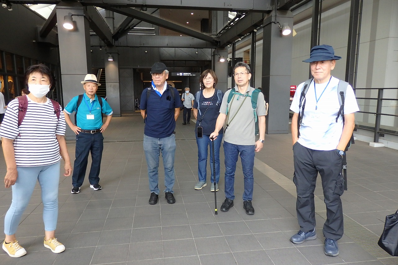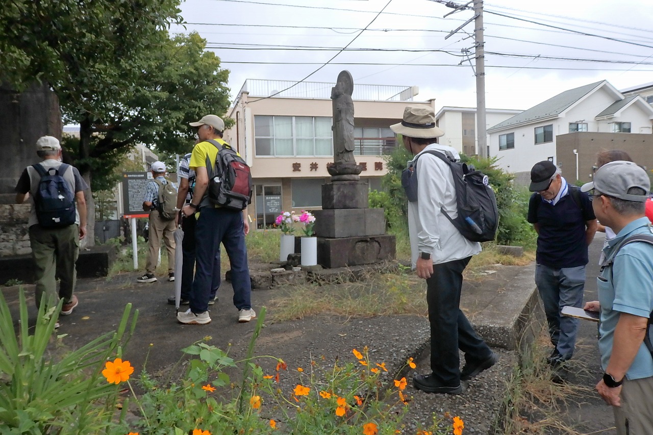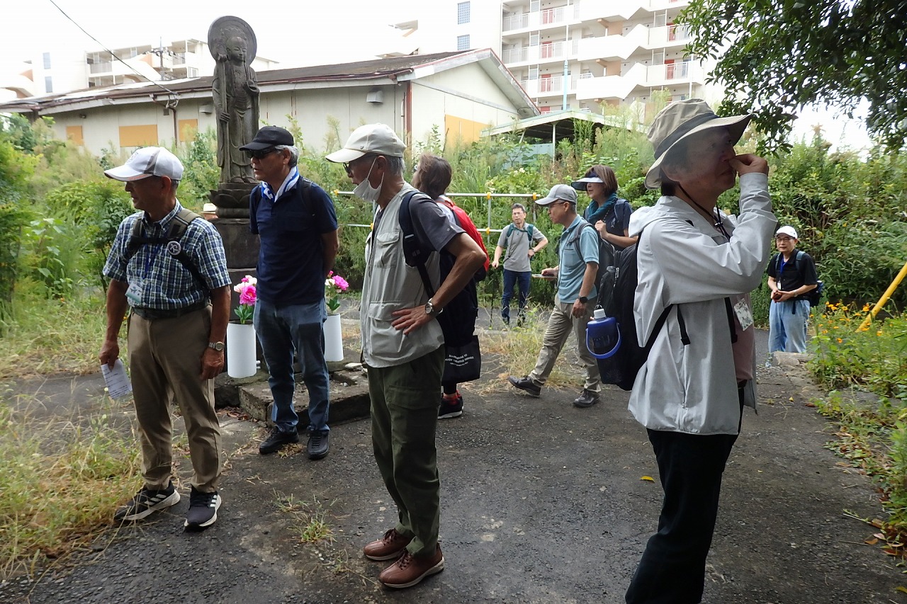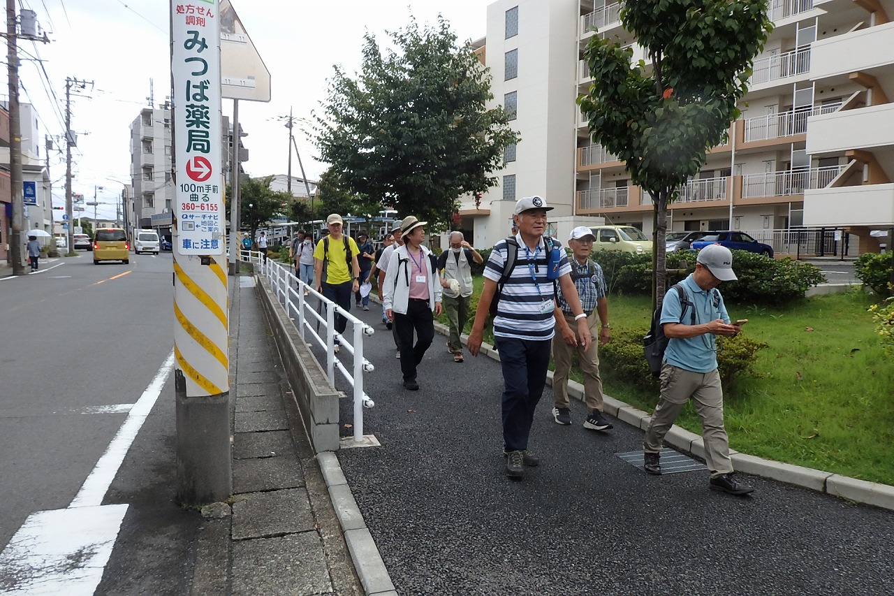 本日の参加者 17名 (内女性3名) 天候 曇のち一時小雨 気温28℃ 歩行距離:13.2km 歩数:2万1千歩 (紀行文・ ・HP 堂本耕造、 写真・HP 高木勝則、 ) |