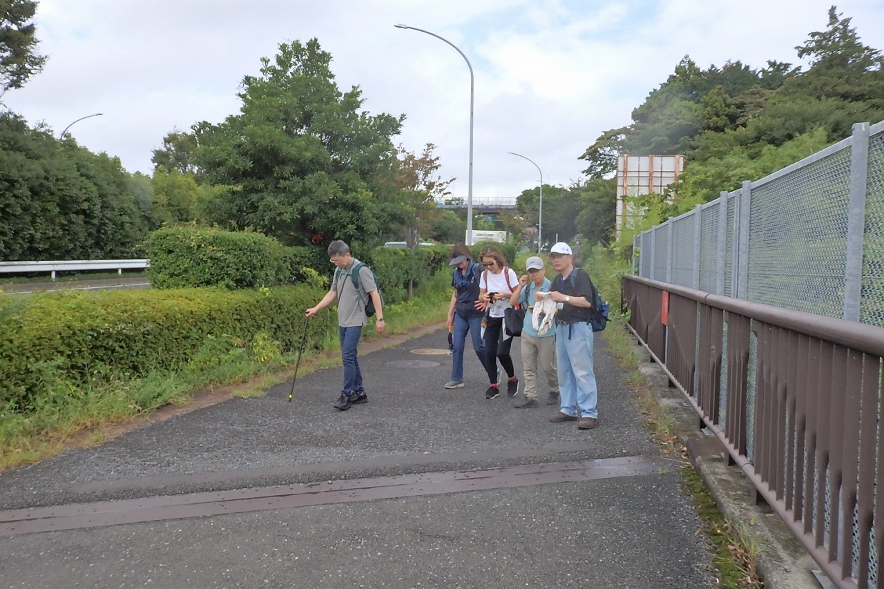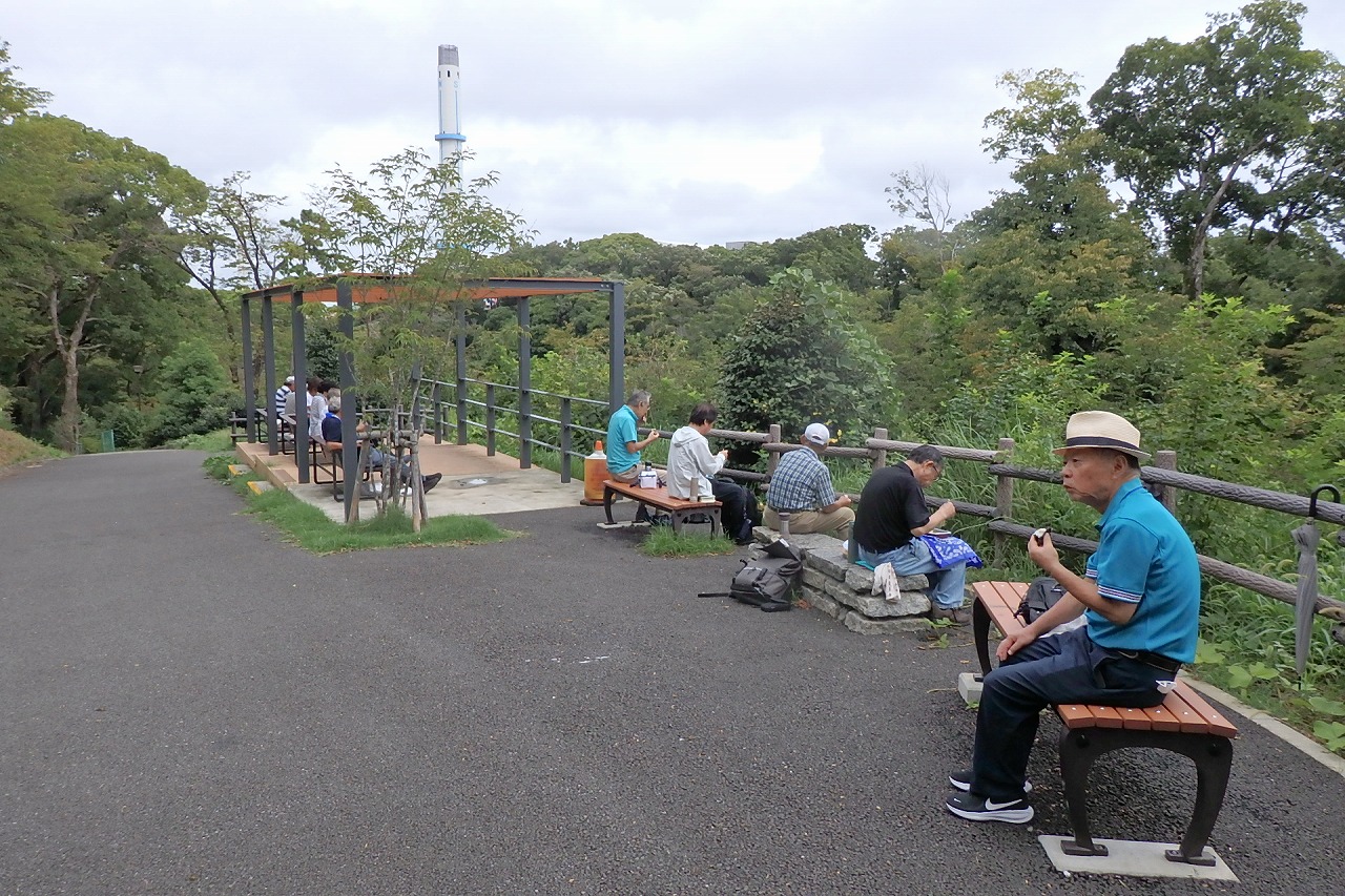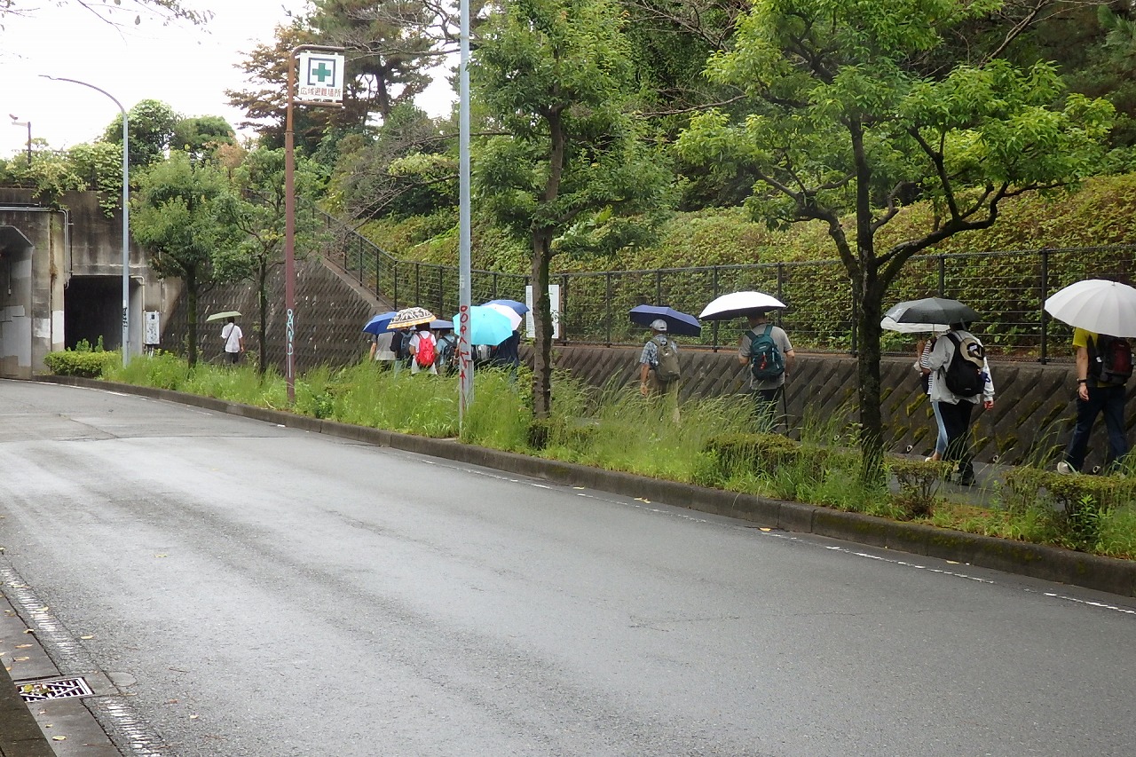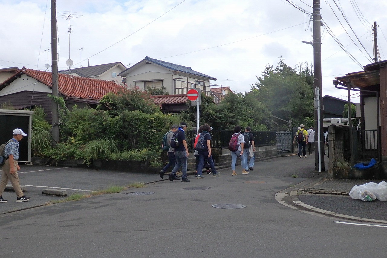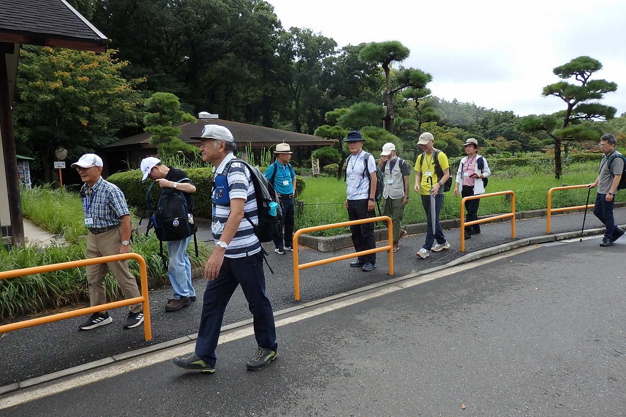 2025年9月13日(土)雨雲レーダーで見ると雨天が心配でしたが実際は一時小雨で過ごせました。この日は一気に平年気温になり、涼しさも感じられるような絶好のウォーキング日和となり17名の参加者で実施しました。相鉄線の二俣川駅改札前に10時集合。受付を済ませ、いつものように談笑の輪ができました。世話役の挨拶を聞いて歩きを開始。駅前から続く自然公園通り~畠山重忠公遺烈碑~こども自然公園~桜山🚻~草