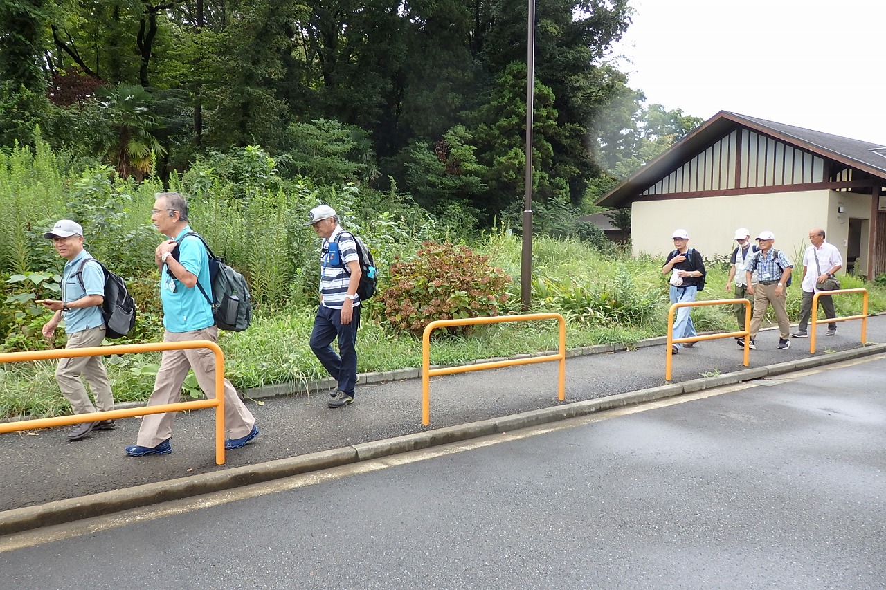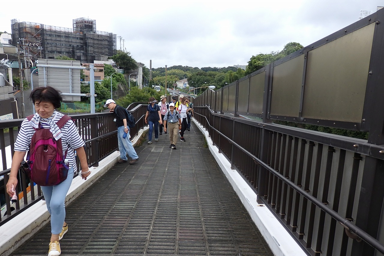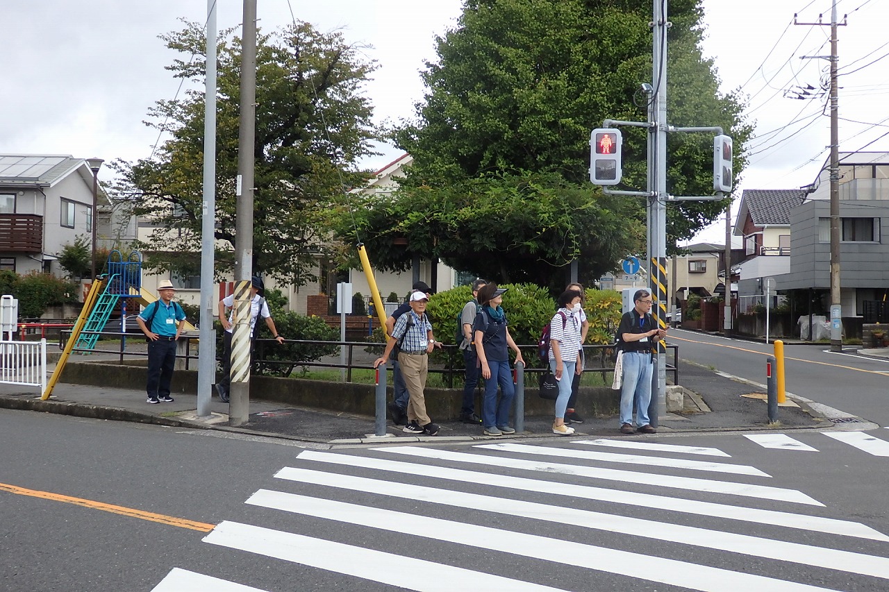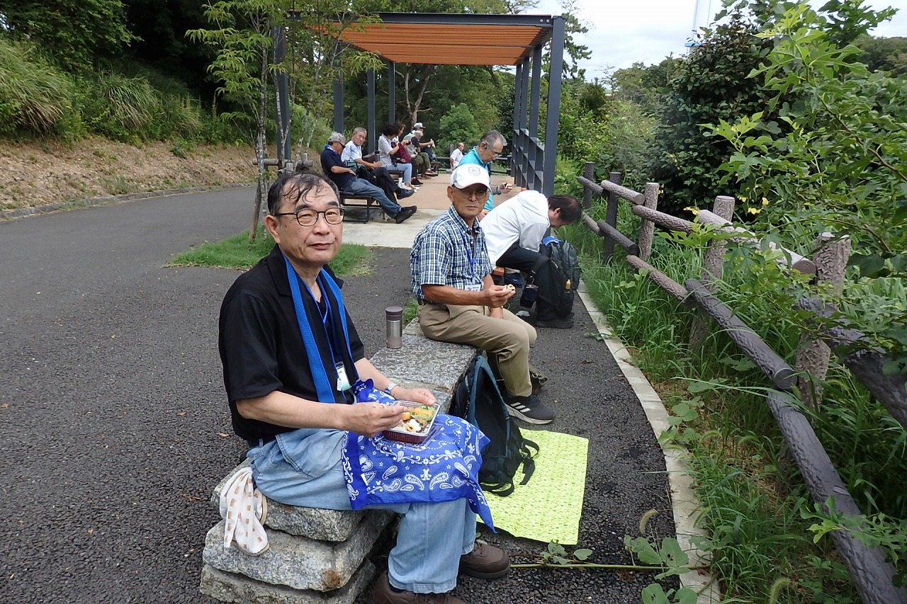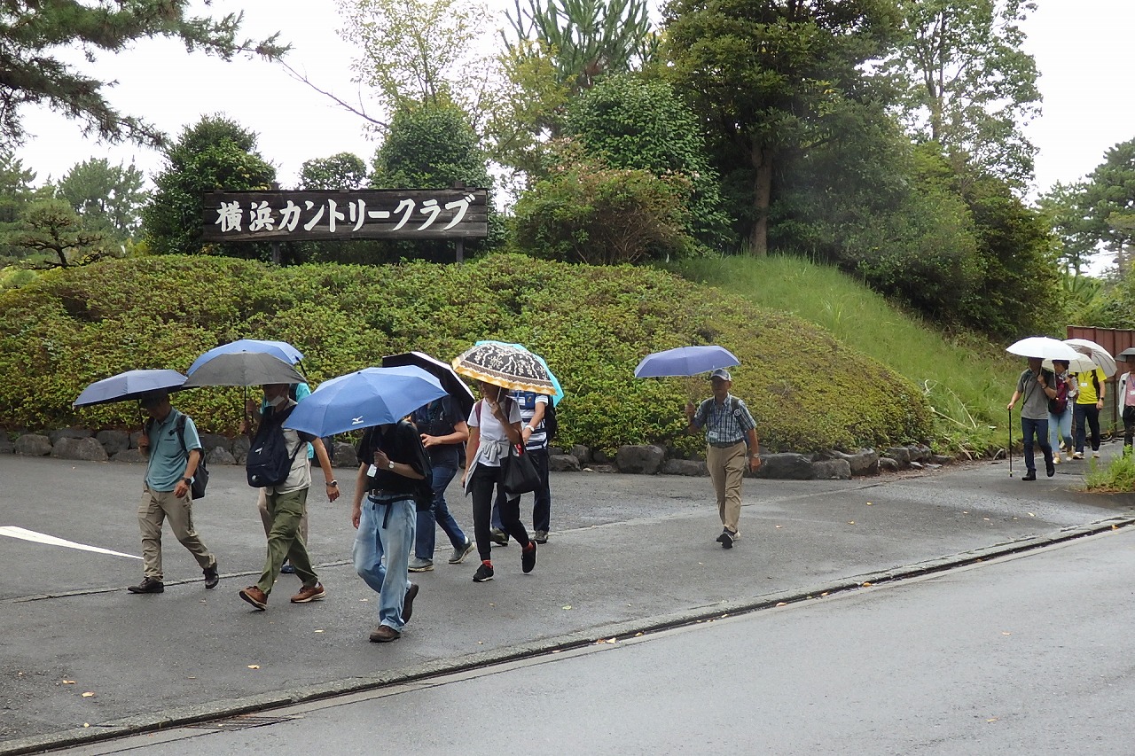 2025年9月13日(土)雨雲レーダーで見ると雨天が心配でしたが実際は一時小雨で過ごせました。この日は一気に平年気温になり、涼しさも感じられるような絶好のウォーキング日和となり17名の参加者で実施しました。相鉄線の二俣川駅改札前に10時集合。受付を済ませ、いつものように談笑の輪ができました。世話役の挨拶を聞いて歩きを開始。駅前から続く自然公園通り~畠山重忠公遺烈碑~こども自然公園~桜山🚻~草