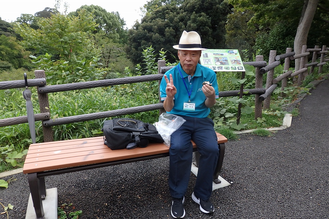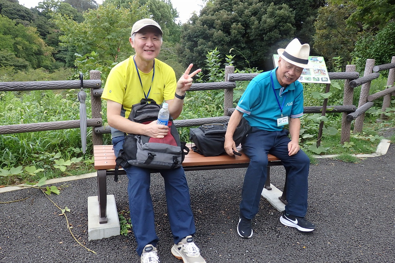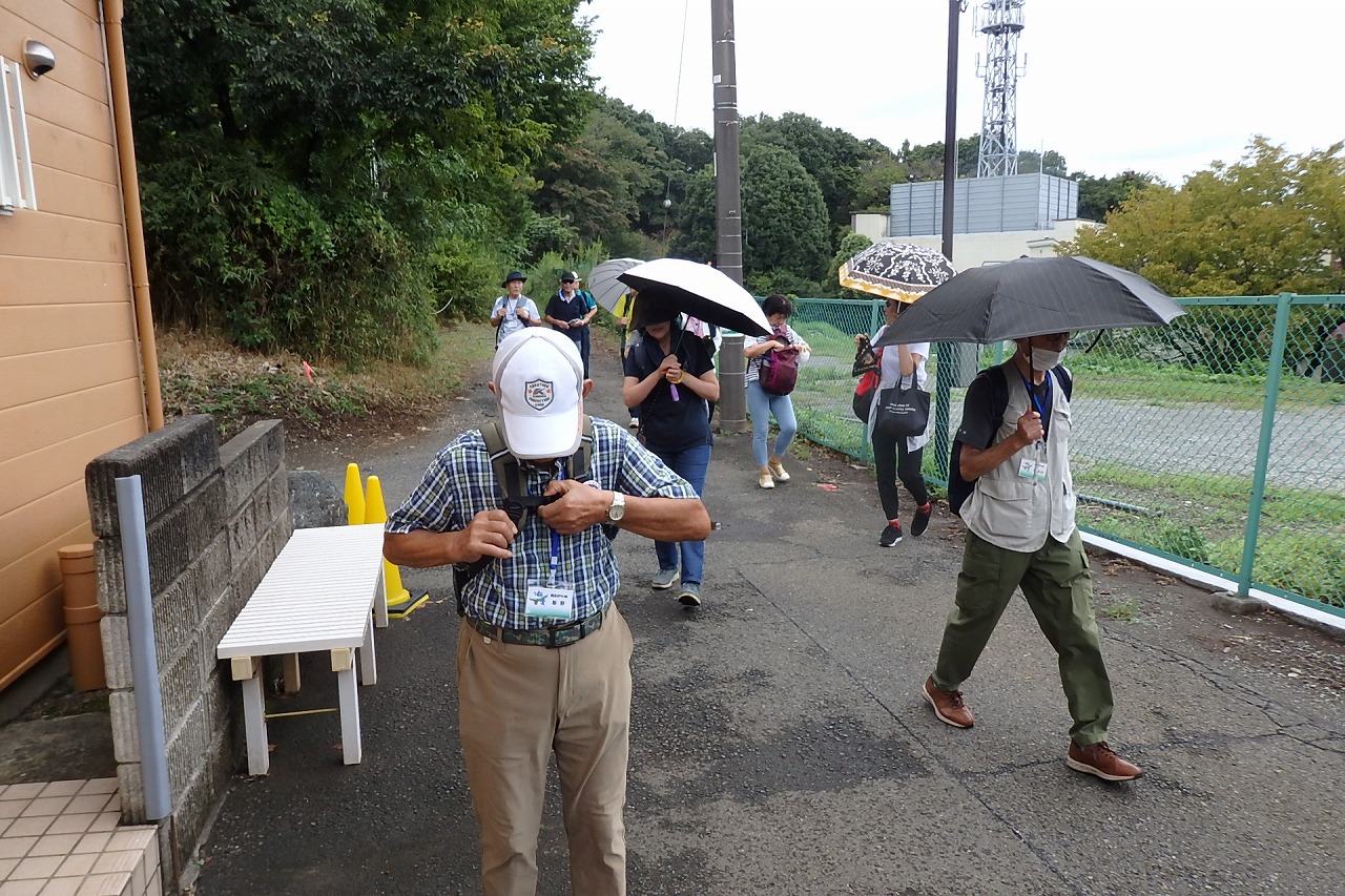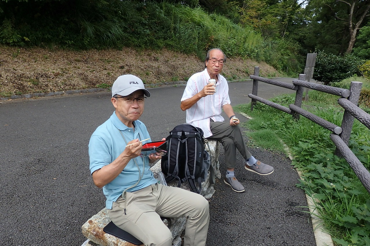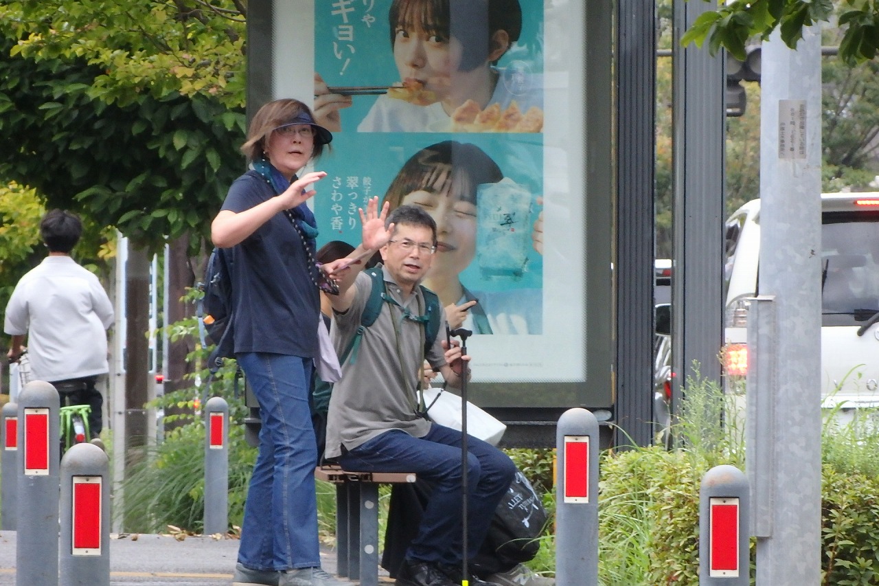 2025年9月13日(土)雨雲レーダーで見ると雨天が心配でしたが実際は一時小雨で過ごせました。この日は一気に平年気温になり、涼しさも感じられるような絶好のウォーキング日和となり17名の参加者で実施しました。相鉄線の二俣川駅改札前に10時集合。受付を済ませ、いつものように談笑の輪ができました。世話役の挨拶を聞いて歩きを開始。駅前から続く自然公園通り~畠山重忠公遺烈碑~こども自然公園~桜山🚻~草